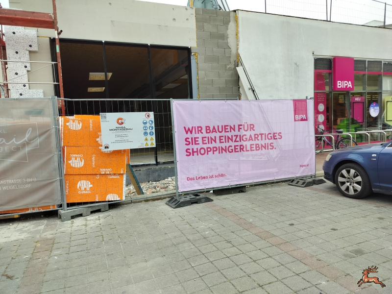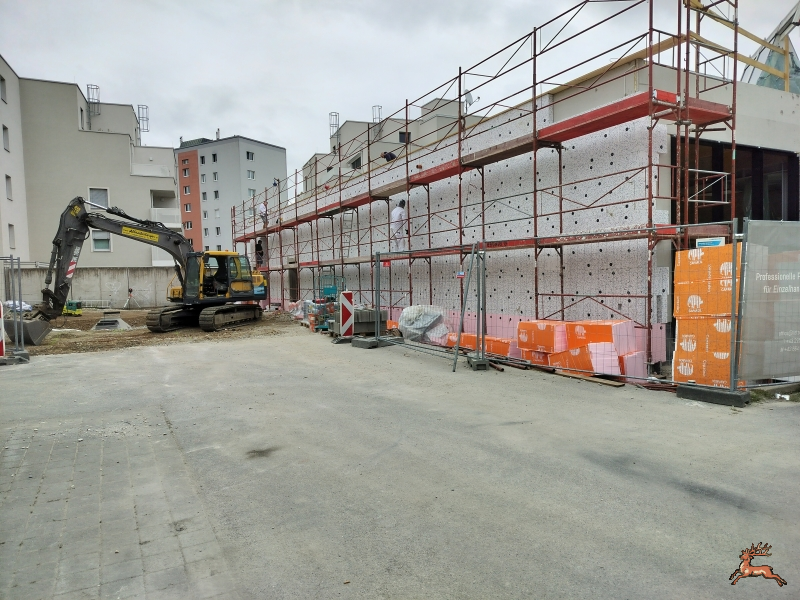 Die neuen Gebäudeteile sind schon durch eine Wärmedämmschicht geschützt, aber es folgen auch im Inneren weitere Umbauten, so dass der Verkauf eingestellt werden muss.