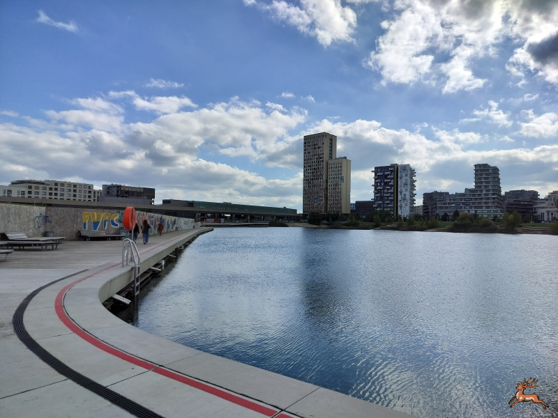 An der bereits fertiggestellten nördlichen Uferpromenade entsteht ein neues Quartier für Wirtschaft, Wohnen und Freizeit gebildet durch die Bauprojekte Lil-y am See, PIER05 und Das Seestädter.