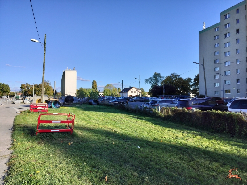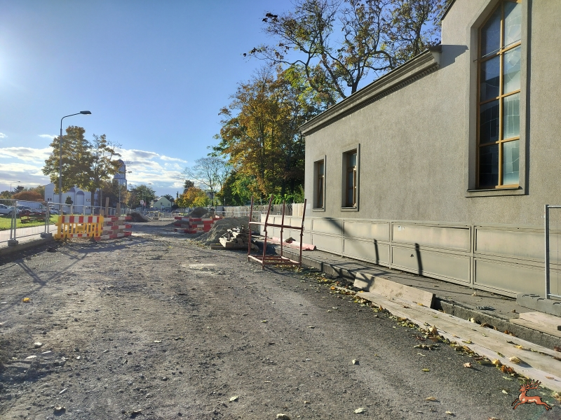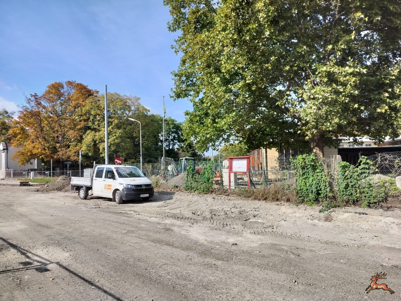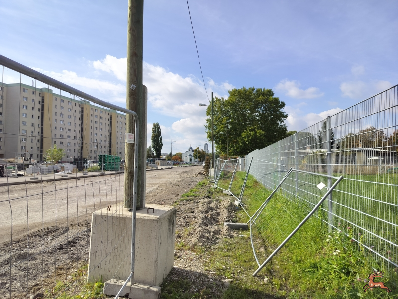 Es bleibt kein Stein auf dem anderen, entfernte Gehsteige deuten die Fahrbahnverbreiterung an. Die Aufbahrungshalle beim Friedhof Hirschstetten wird wohl stehen bleiben. Wird hier die Fahrbahn verschwenkt? Bäume wurden ja schon vor langer Zeit gerodet.