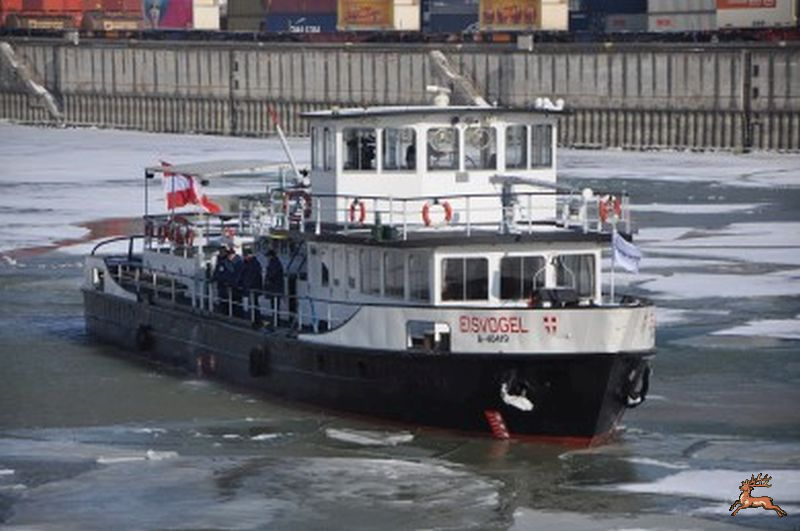 Die MS Eisvogel wurde 1955 in der Schiffswerft Linz gefertigt und versieht jetzt seinen Dienst in den Wiener Donauhäfen. Zum Brechen des Eises fährt sie mit dem Bug auf das Eis auf, bis es durch die Last des Schiffes bricht.