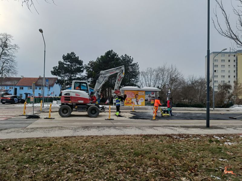 Kein Spatenstich ist notwendig, keine feierliche Presseeinladung der Bezirks- und Stadtverantwortlichen ist erfolgt, jedoch die Arbeiten in der Quadenstraße an der Kreuzung mit der Ziegelhofstraße und der Murraygasse gehen rasch voran. Die ehemalige Wiese ist bereits versiegelt. Die gelieferte Asphaltmenge ist eher knapp bemessen, doch das Loch ist zu.