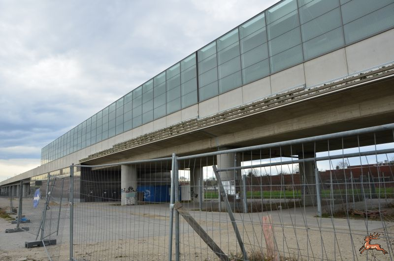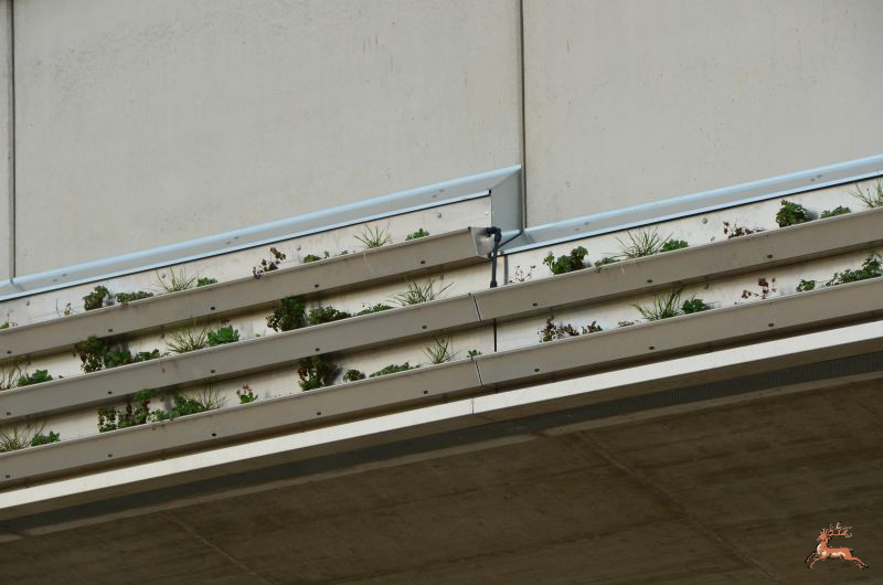 Obwohl an der Station Lina-Loos-Platz nahe der Franz-Wels-Gasse noch kein Zug der U2 hält, war man bei der nachhaltigen Ausgestaltung der Station sehr kreativ: an der Fahrtrasse oberhalb der zukünftigen Fahrrad-Abstell-Plätze ist eine schmale mehrstufige Trasse mit Jungpflanzen angelegt. Noch ist nicht zu erkennen, ob das Grün die Betonwand oberhalb bewuchern soll, oder ein Pflanzenvorhang den Bereich unter der U-Bahn-Trasse beschatten wird.