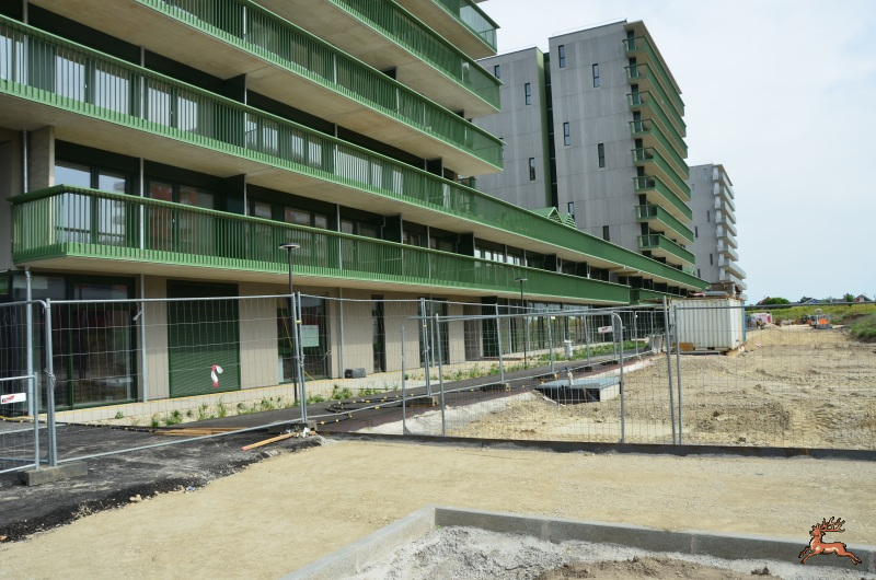 Der geplante Park vor dem Wohnbauprojekt am Lenzweg ist zwar noch nicht zu erkennen, aber die Wohneinheiten mit Bauteilaktivierung zur energieeffizienten Klimatisierung stehen kurz vor der Fertigstellung.