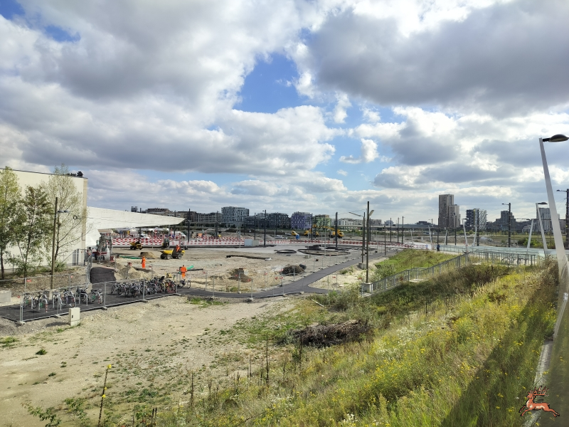 (*) Zur Übersetzung der U-Bahn/Ostbahn/Stadtstraße entstehen nahe Aspern Nord fünf Brückenbauwerke: zuerst errichtet Fußgängerzugang zur U-Bahn und Ostbahn, gefolgt von einer Rad- und Fußgängerbrücke gleich neben der Station, nun ergänzt durch die Straßenbahnbrücke sowie zwei Auto-Anschlussbrücken an die S1-Stadtstraße (Seestadt Ost+West).