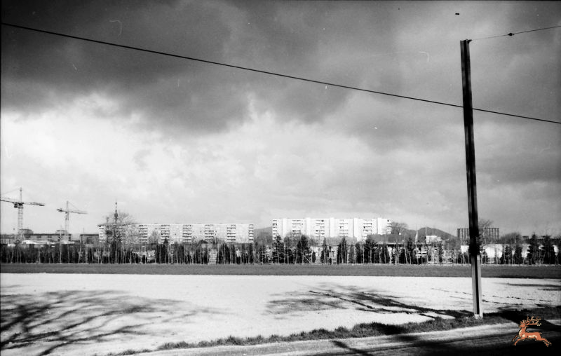 Blickt man von der Hirschstettner Straße nahe der Süßenbrunner Straße Richtung Westen über das Feld, so erkennt man die Kräne einer Baustelle in Neu-Kagran, die Wohnhausanlage Siebenbürgerstraße dahinter den Donauturm und den Leopoldsberg sowie das Hochhaus an der Steigenteschgasse 15.