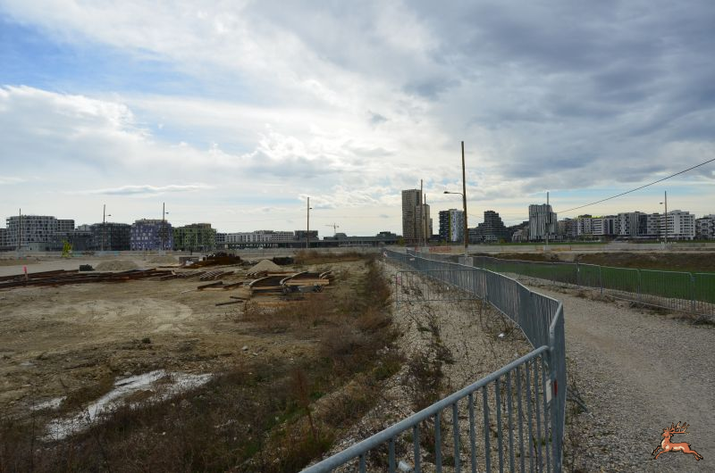 Seit dem Brückenbau für den Anschluß der Seestadt an die Stadtstraße und den Neubau der Straßenbahnbrücke für die Verlängerung der Linie 27 wird am Bahhofsvorplatz gegraben. Gleise werden verlegt, Wannen mit Stahlrand vermutlich für neue Schotterbeete betoniert, zahlreiche Busspuren asphaltiert und Stationsplattformen mit Wartehäuschen wachsen aus dem Schotterfeld.